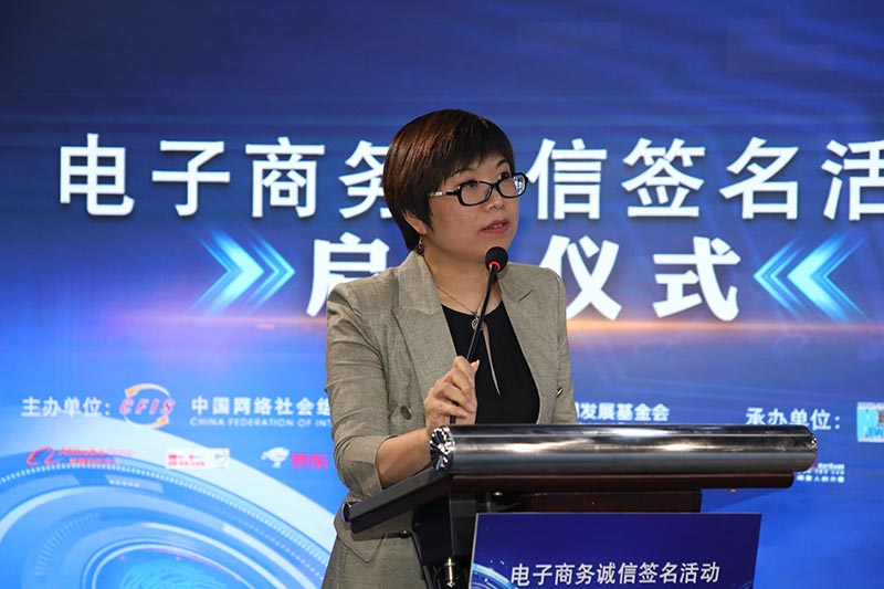 苏宁控股集团品牌部总经理苑金香介绍诚信签名组织情况。高海涛 摄
